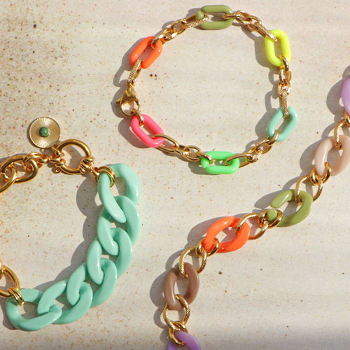 Deze nieuwe serie acryl schakels is perfect te combineren met jasseron ketting in diverse schakels. Ontwerp een mooie collectie armbanden en kettingen waarbij je acryl schakels en jasseron schakels afwisselt. Oorbellen maak je heel eenvoudig door de kleurrijke schakels aan oorbellen als oorstekers of creolen te bevestigen. Gebruik de schakels ook voor telefoonkoorden en vergeet niet de rivets voor telefoonhoes voor een mooie afwerking.