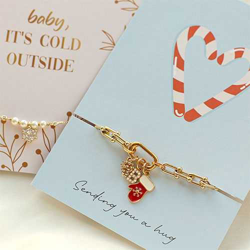 Kaartjes voor sieraden "Baby, it's cold outside" Light pink