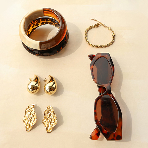 Armbanden resin with leopard print Gold-transparent light amber brown-black