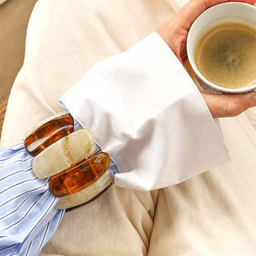 Armbanden bangle resin Transparent amber brown-off white-beige