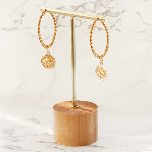 Sieraden display T-vorm met houten voet voor oorbellen (3st.) Naturel (natuurlijke kleur van het hout)-gold