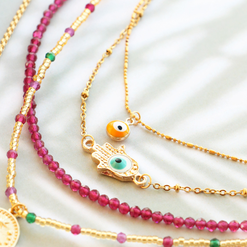Dit kun je maken met de bedels en tussenstukken met een symbolisch oog: