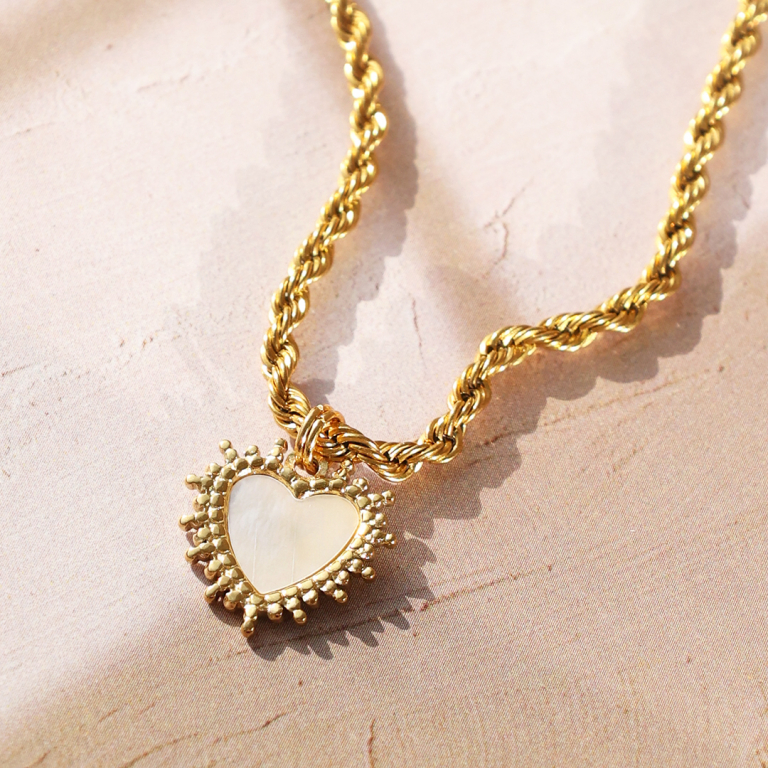 Bedels van Stainless steel Roestvrij staal (RVS) shell heart Gold-white (natuurlijke kleur)