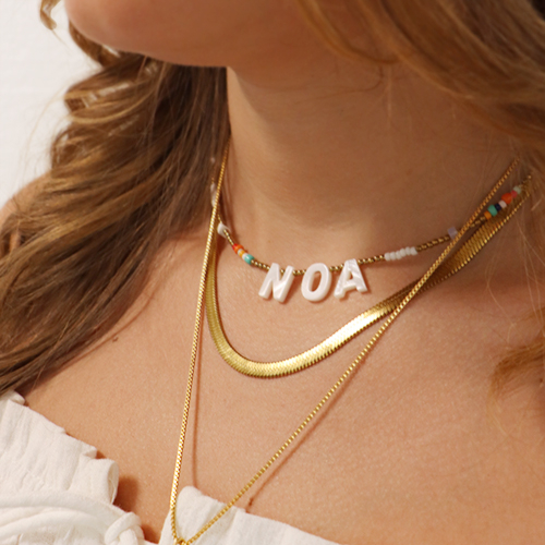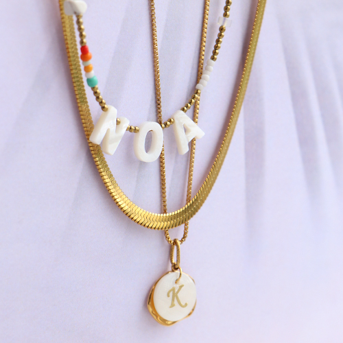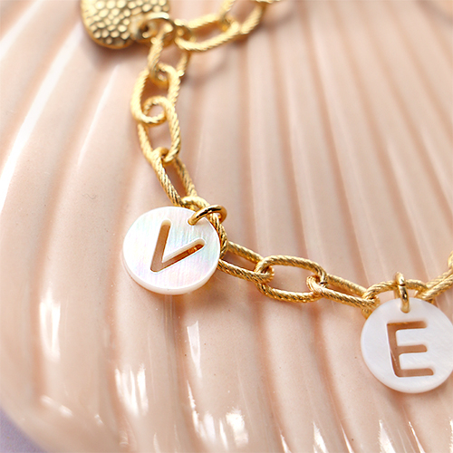 Schelp kralen letter A Gold-white (natuurlijke kleur)