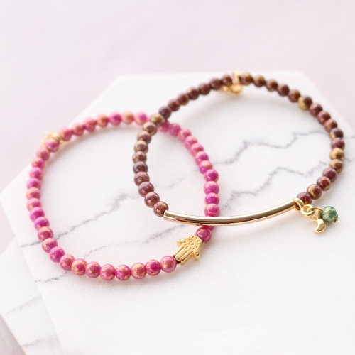 Sieraden met trendkleuren en gouden details van nieuwe jade natuursteen kralen