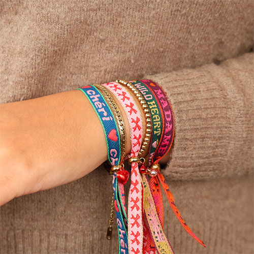 • BY31® Tekstlint "Wild Heart" Dark green-light pink-yellow-purple