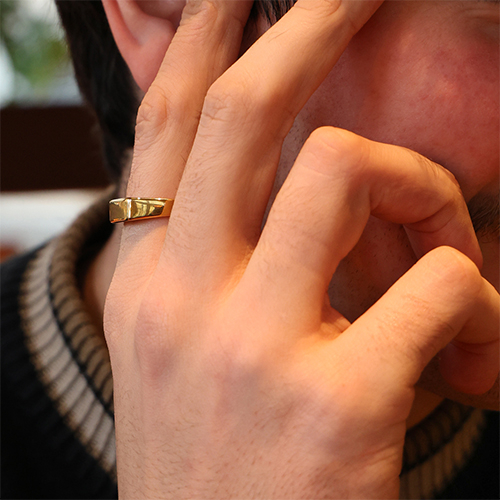 Ringen van Stainless steel Roestvrij staal (RVS) with square Gold