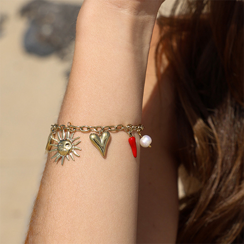 Armbanden van Stainless steel Roestvrij staal (RVS) met bedels summer Gold-red-white