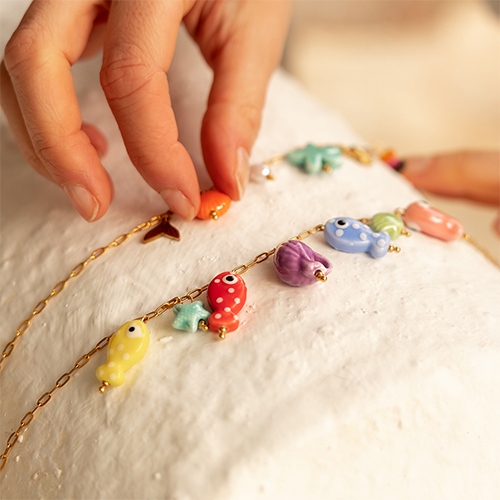 Kettingen van Stainless steel Roestvrij staal (RVS) met bedels sea life Gold-multicolour