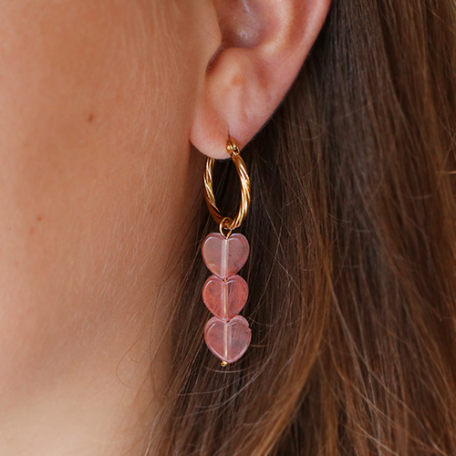 Kralen natuursteen heart Coral red