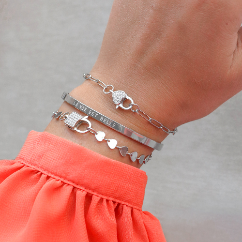 Armbanden van Stainless steel Roestvrij staal (RVS) "LA VIE EST BELLE" Zilver