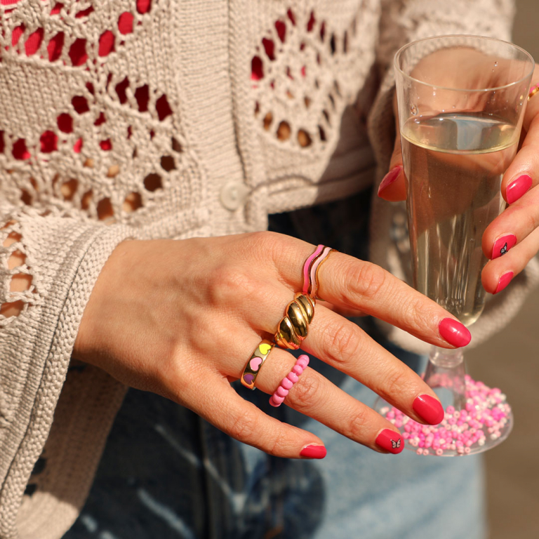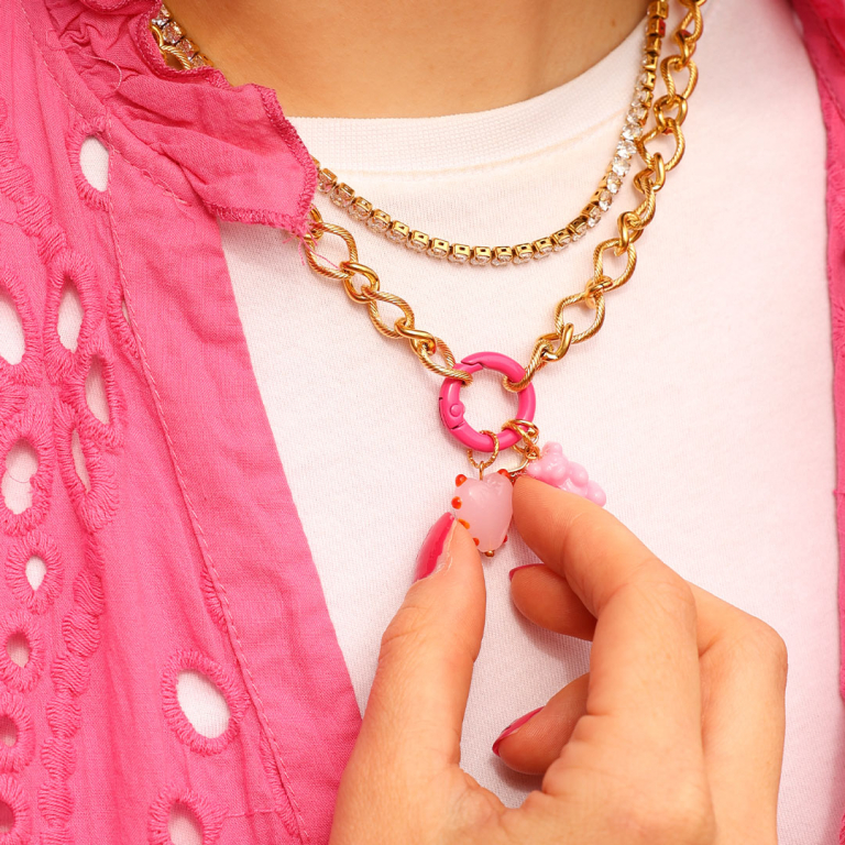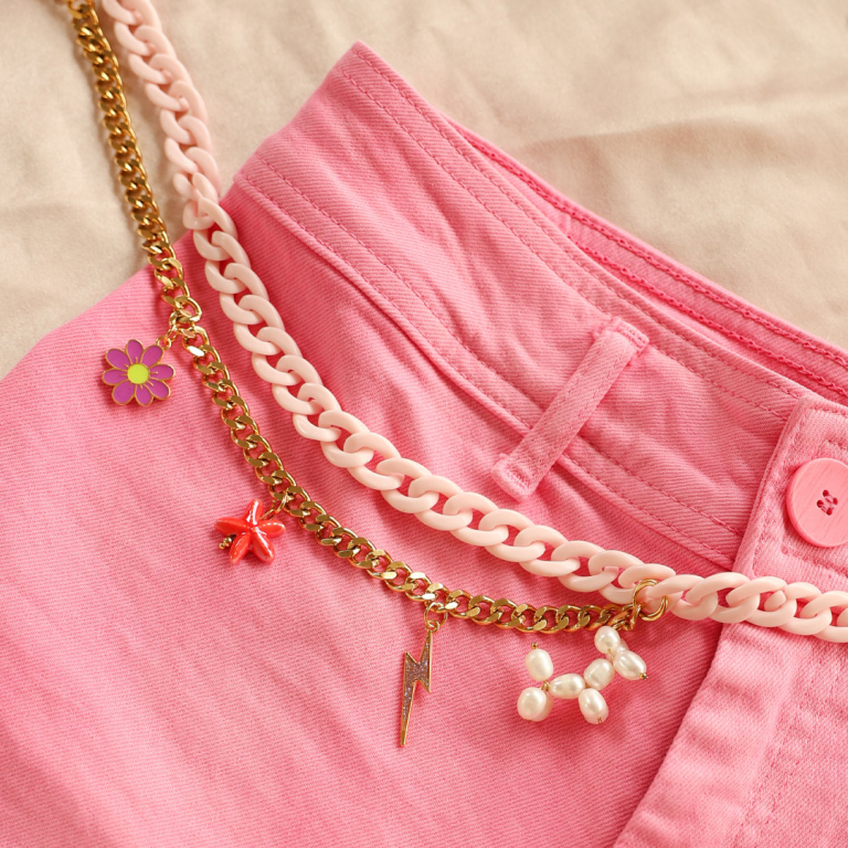 Ontdek de schitterende 'Looks We Love' -editie: Pink Party! Betaalbarekralen viert deze maand haar 18e verjaardag, dus tijd voor party proof sieraden inspiratie in Betaalbarekralen stijl! Met een exclusieve collectie die zachtroze tinten combineert met gouden chunky accenten. Kettingen met bedels en strass, stijlvolle waist chains met acrylic chain en diverse DQ bedels of oorbellen van plexx en crystal glass, gecombineerd met jasseron en elegante bedels. Maak je collectie compleet met kant-en-klare chunky ringen of zelfgemaakte elastische ringen met acryl kralen en rocailles. Laat je inspireren door deze Pink Party look en ga aan de slag!