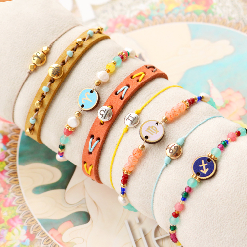 Deze sieraden kun je maken met DQ metalen zodiac kralen en macramé draad: