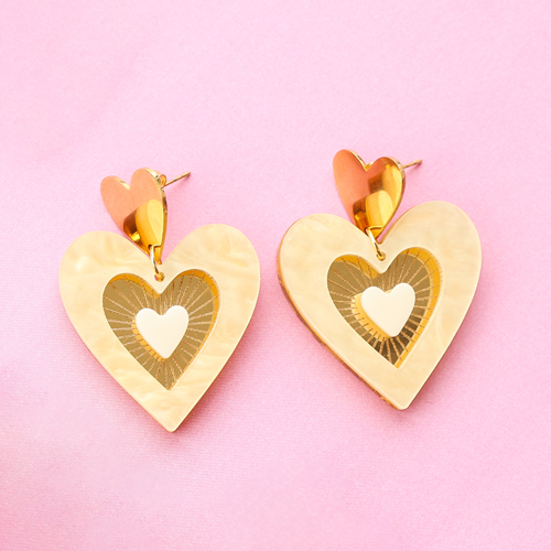 Oorbellen van Stainless steel Roestvrij staal (RVS) heart Gold