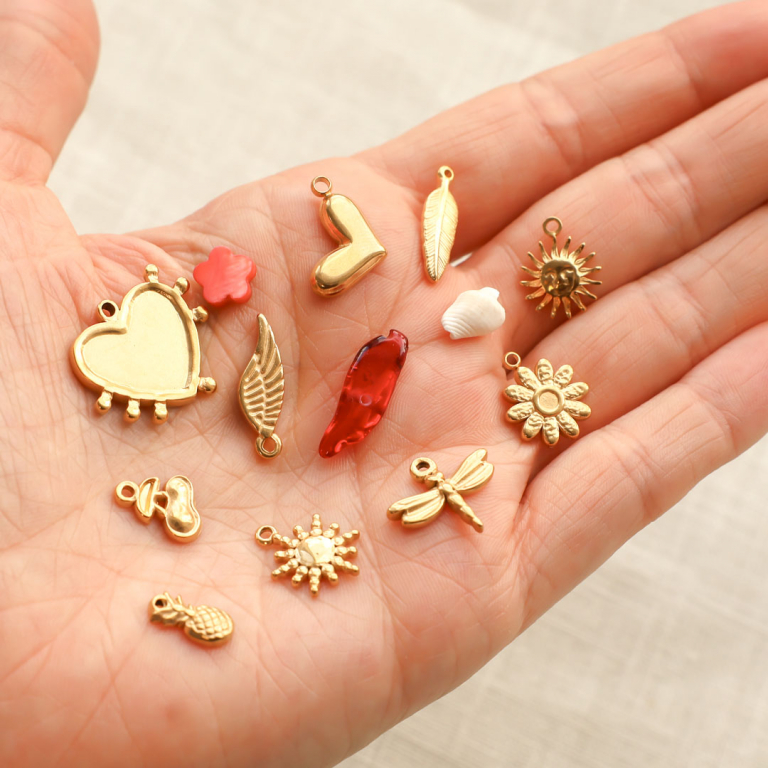 Heb jij onze nieuwe collectie roestvrij stalen bedels al gespot? Je shopt ze in diverse vrolijke vormen zoals bloemen, dieren en hartjes. Deze serie is perfect voor het creëren van mooie bedelkettingen in een layered look of hang de bedels aan creolen oorbellen voor trendy oorbellen.