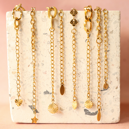 Deze nieuwe rvs verlengkettingen maken je sieraden helemaal af! Elk kettinkje is voorzien van een schattig bedeltje – een ster, hart of bloem. Stijlvol, roestvrij én superleuk als extra accent aan je sieraden!