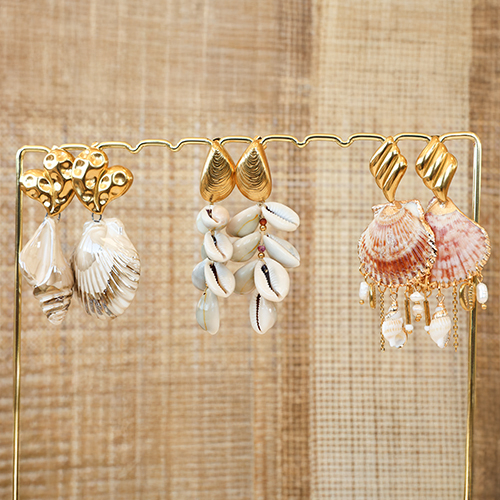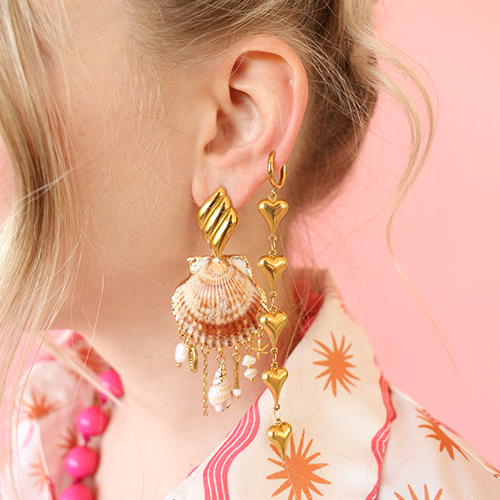 Benodigdheden van Stainless steel Roestvrij staal (RVS) oorbellen / oorsteker mussel with loop Gold