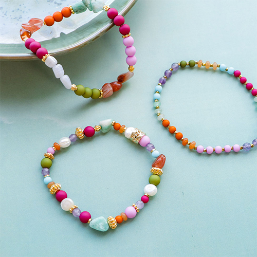 Ga aan de slag met acryl kralen in herfst- en winterkleuren voor je nieuwe najaarscollectie. Met elastiek draad en diverse kralen ontwerp je in korte tijd de mooiste armbanden. Gebruik hiervoor natuursteen kralen, kralen van acryl tube, DQ metalen kralen en zoetwater parels. Selecteer kralen in bijpassende tinten om de armbanden te kunnen combineren. Creëer telefoonkoorden met macramé draad en diverse kralen en gebruik sleutelhanger ringen in bijpassende kleuren om je telefoonkoord af te werken.