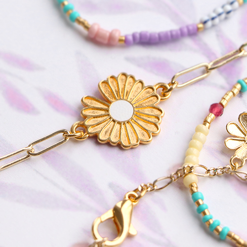Stijlvolle zomerse sieraden ontwerpen met goudkleurige bloem bedels van DQ metaal