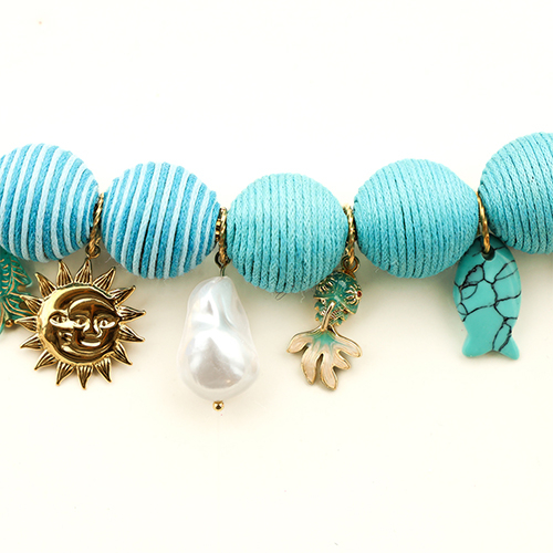 22 mm kralen van acryl met waxkoord Light blue-blue