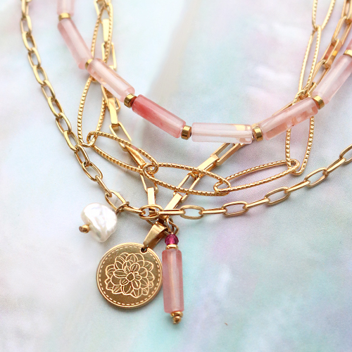 Natuursteen kralen tubes Rose pink