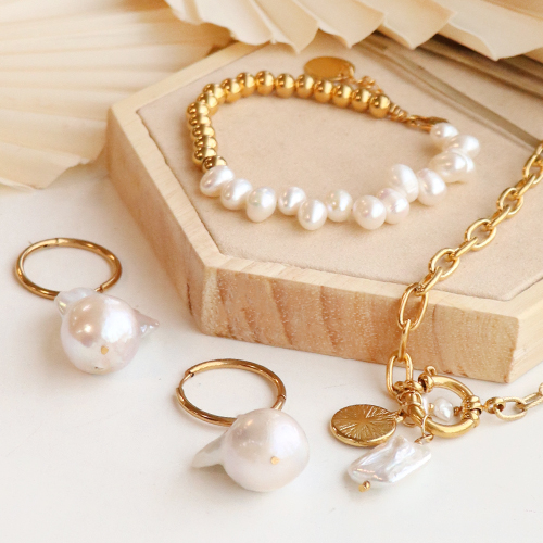 Maak een eyecatching sieraden set met zoetwaterparels, stainless steel jasseron en een robuuste sluiting.