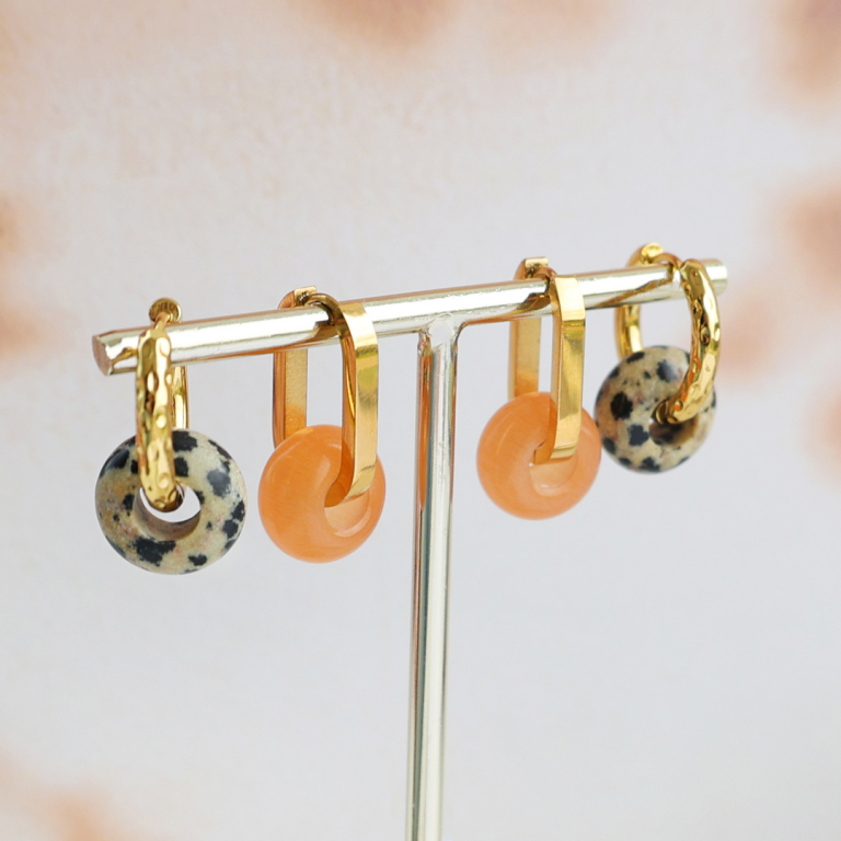Elegante oorbellen en bedels met rondellen natuursteen kralen
