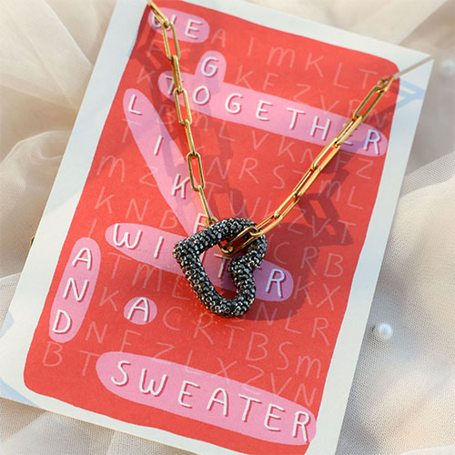 Kaartjes voor sieraden "We go together..." Red-pink-off white