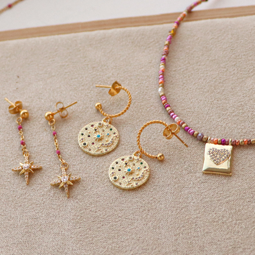 Oorbellen van Stainless steel Roestvrij staal (RVS) creolen enamel 14mm Punch pink-gold
