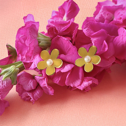 Oorbellen / oorstekers van Stainless steel Roestvrij staal (RVS) pearls flower Gold