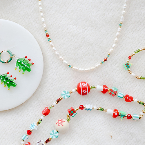 Word jij ook zo vrolijk van deze kerstserie met prachtige glasbedels en winter kralen van polymeer en hout? Alle items zijn verkrijgbaar met diverse designs. Verwerk ze in diverse sieraden en vergeet daarbij niet een trendy telefoonkoord in je collectie op te nemen!