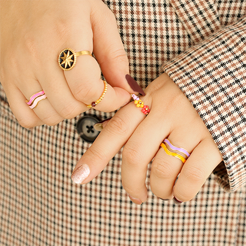 Ringen van Stainless steel Roestvrij staal (RVS) Gold-neon pink