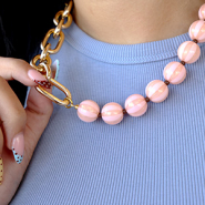 16 mm kralen van DQ® acryl met strepen Pink-golden brown